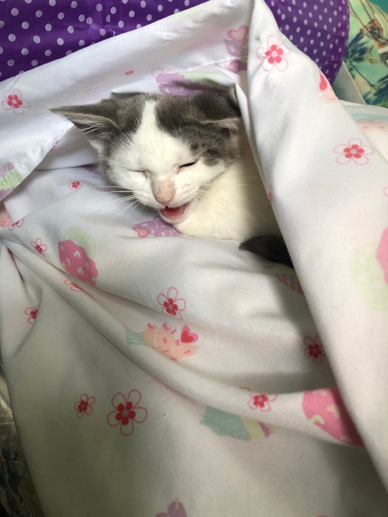For those that don’t know the difference between a stray and feral cat; a stray cat is a cat that likely had a home at one point, or has had fairly frequent human interaction during its life. A stray cat may appear feral at first, being very scared and maybe even a little aggressive, but within a day or so they come around. They can easily be “tamed” and are happy to be indoors and in human contact.